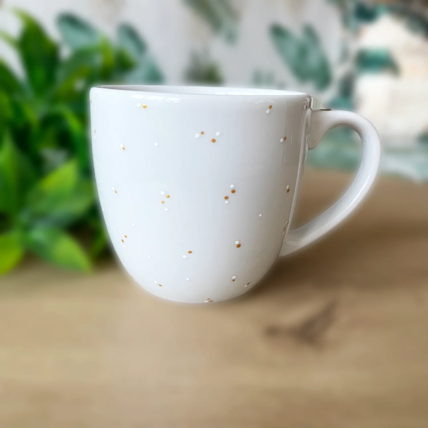 Ręcznie malowany kubek porcelanowy z polskiej porcelany Lubiana, z motywem nawiązującym do serialu Friends. Dookoła subtelnie nakrapiany.